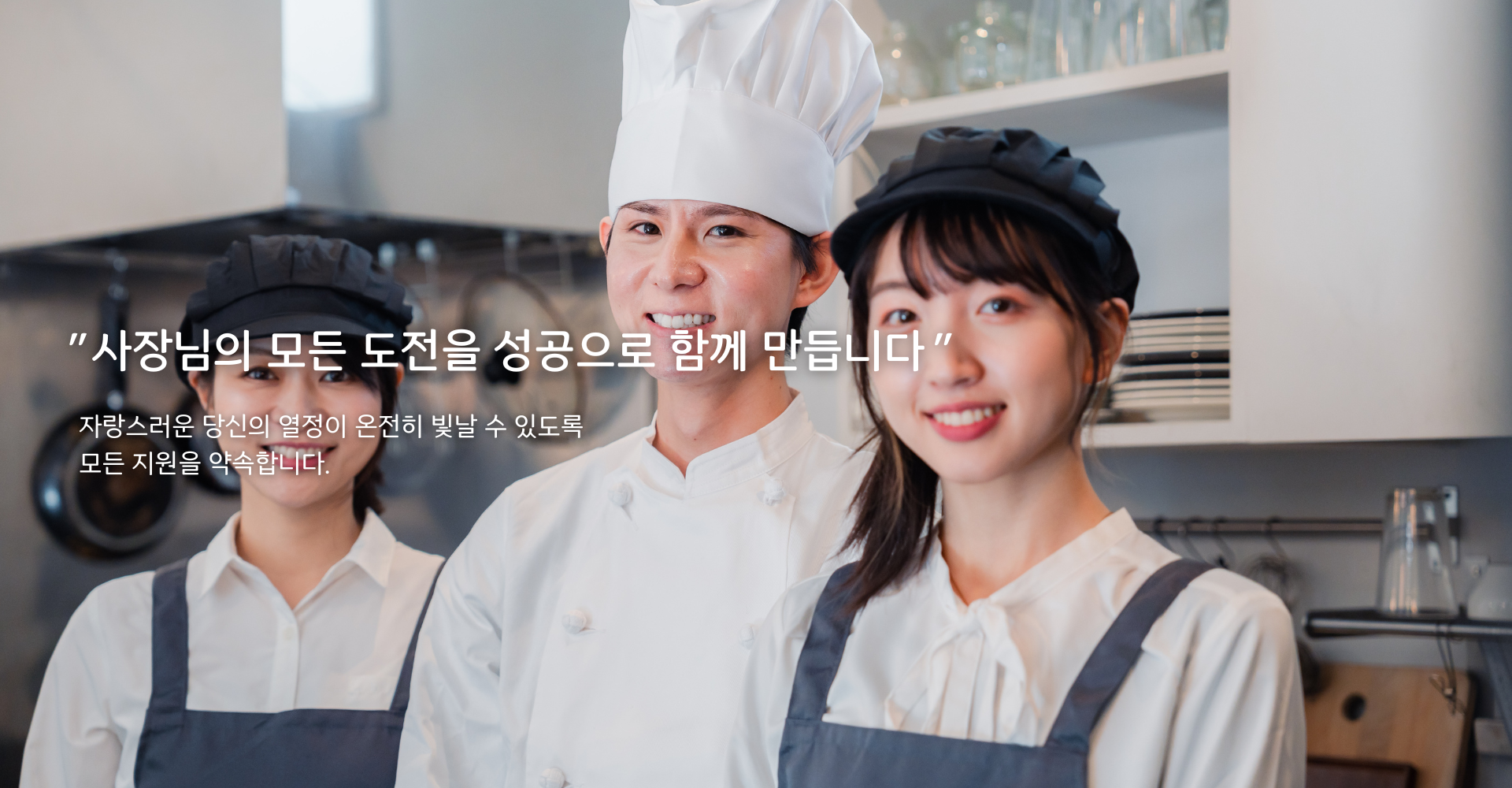 사장님의 사업 단계와 니즈에 꼭 맞는 필수 서비스를 조합하여 최적의 효율을 제공하는 토탈 솔루션을 경험하세요.